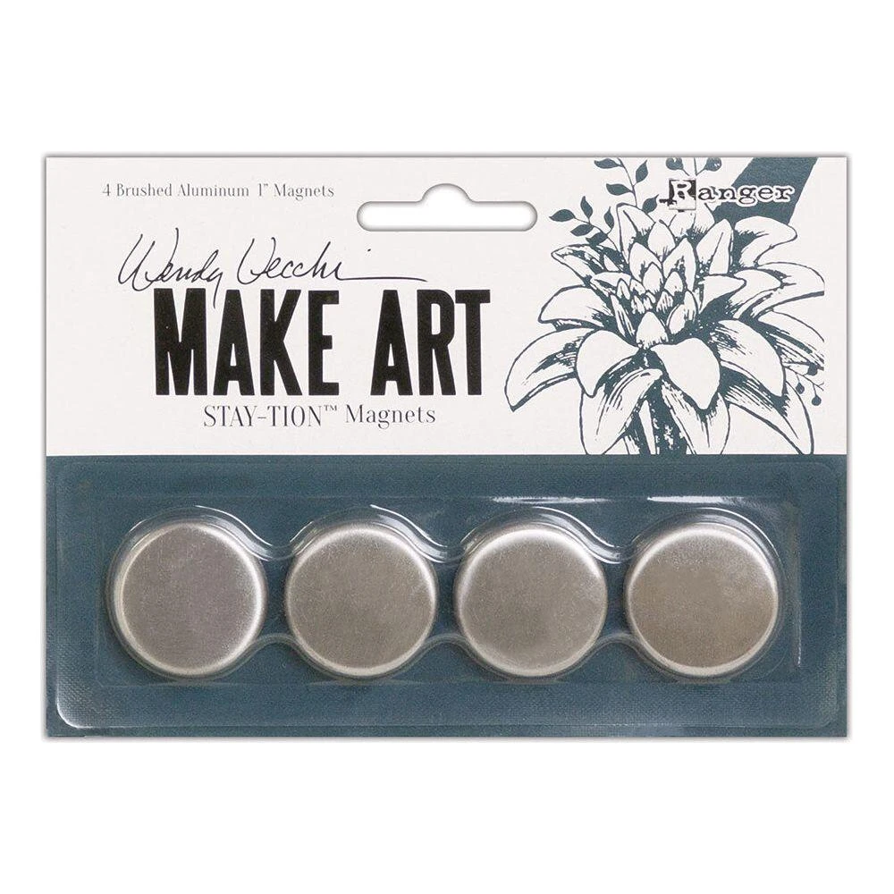 Wendy Vecchi MAKE ART STAY-tion Replacement Magnets are now available. Use Wendy Vecchi Make Art STAY-tion Magnets to hold projects in place for easy stenciling, aligning, embossing, and creating on the Wendy Vecchi Make Art STAY-tion. These foam-backed magnets won’t pinch your fingers or break easily. Magnets measure 1 inch round. Available in a pack of four brushed aluminum magnets.