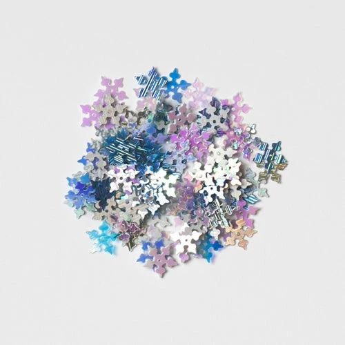 Each bag contains an assortment of blue, purple, and holographic snowflake sequins.