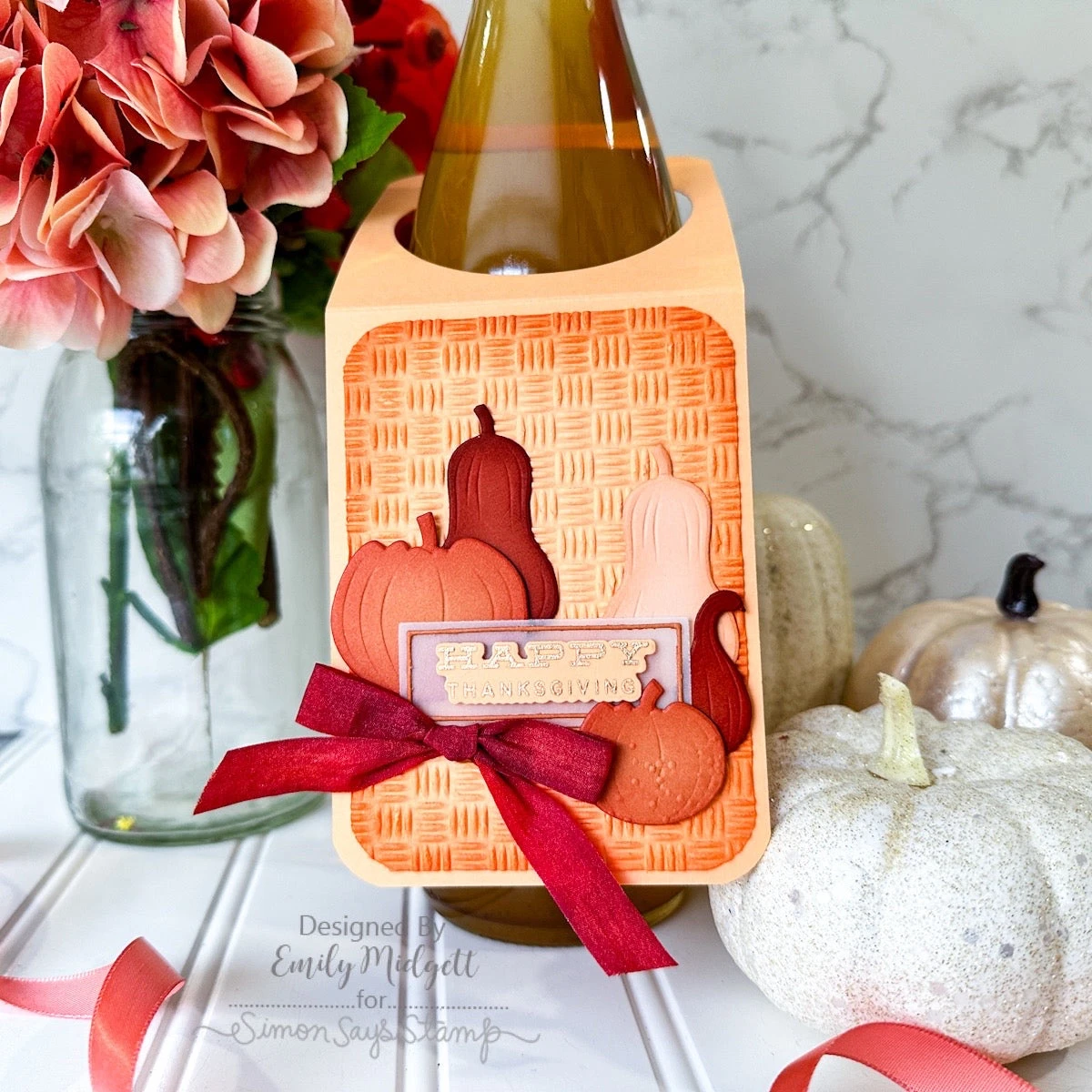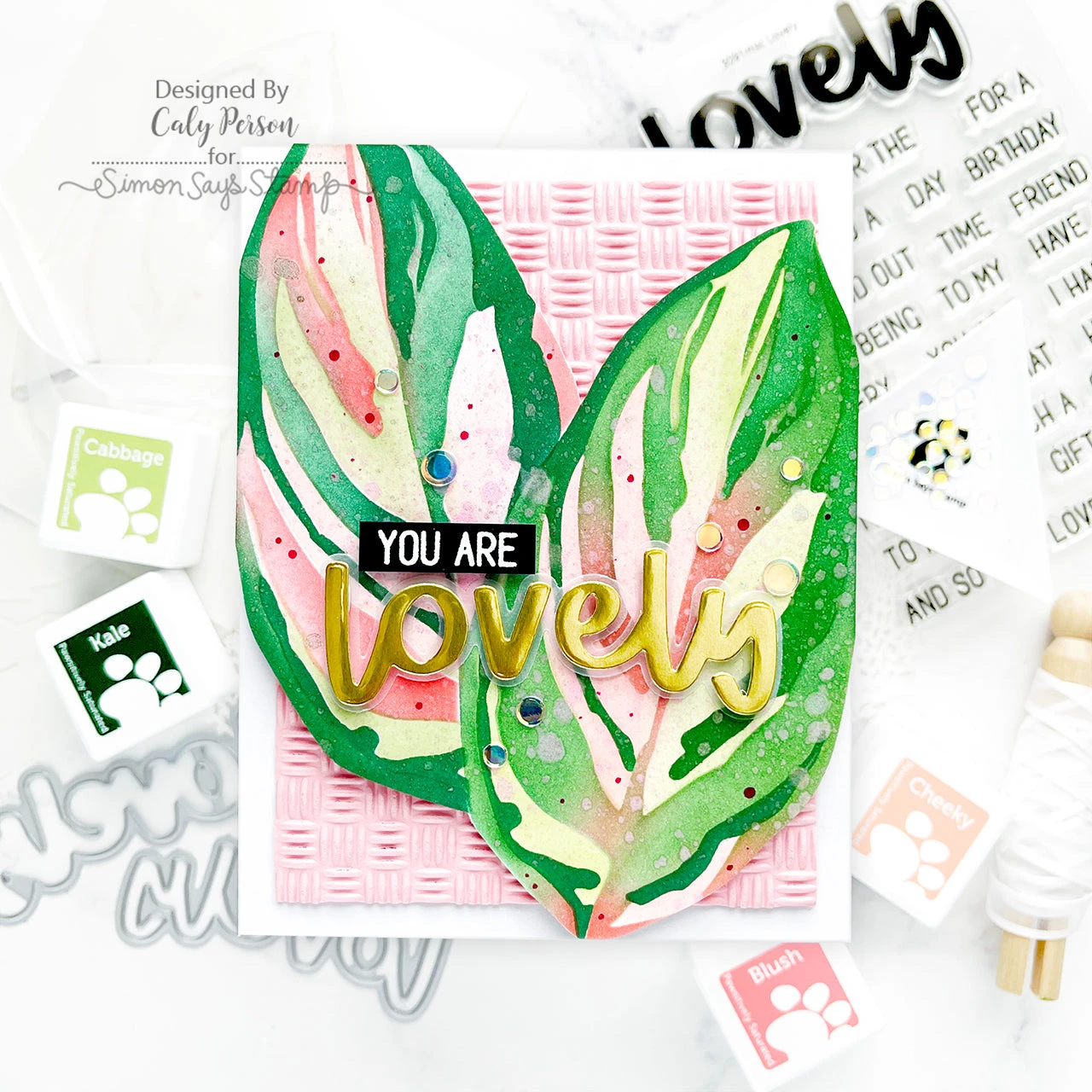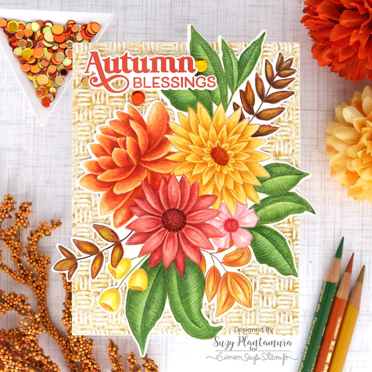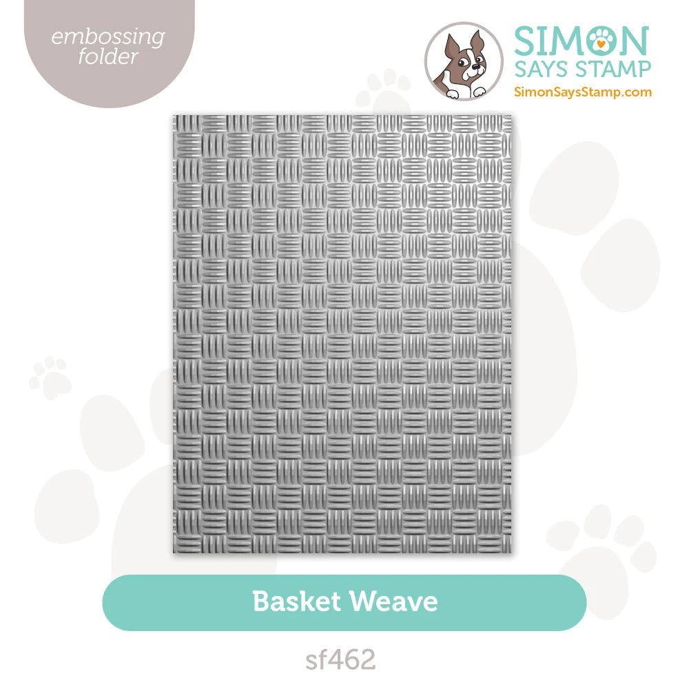 The Simon Says Stamp Basket Weave embossing folder creates a textured background that mimics the look of a woven basket.