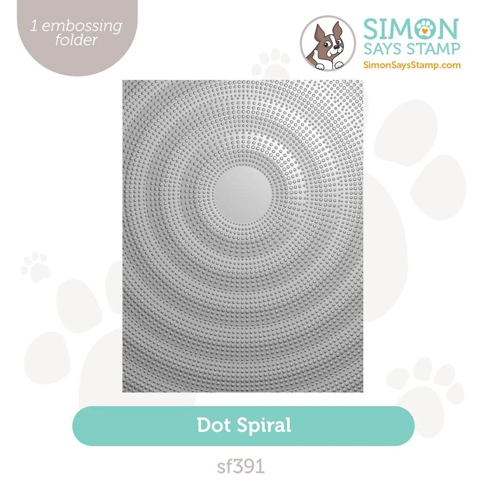 The Simon Says Stamp Dot Spiral embossing folder features a striking concentric circular pattern made up of raised dots in varying sizes. The design radiates outward in evenly spaced rings, adding a bold sense of rhythm and texture to your backgrounds.