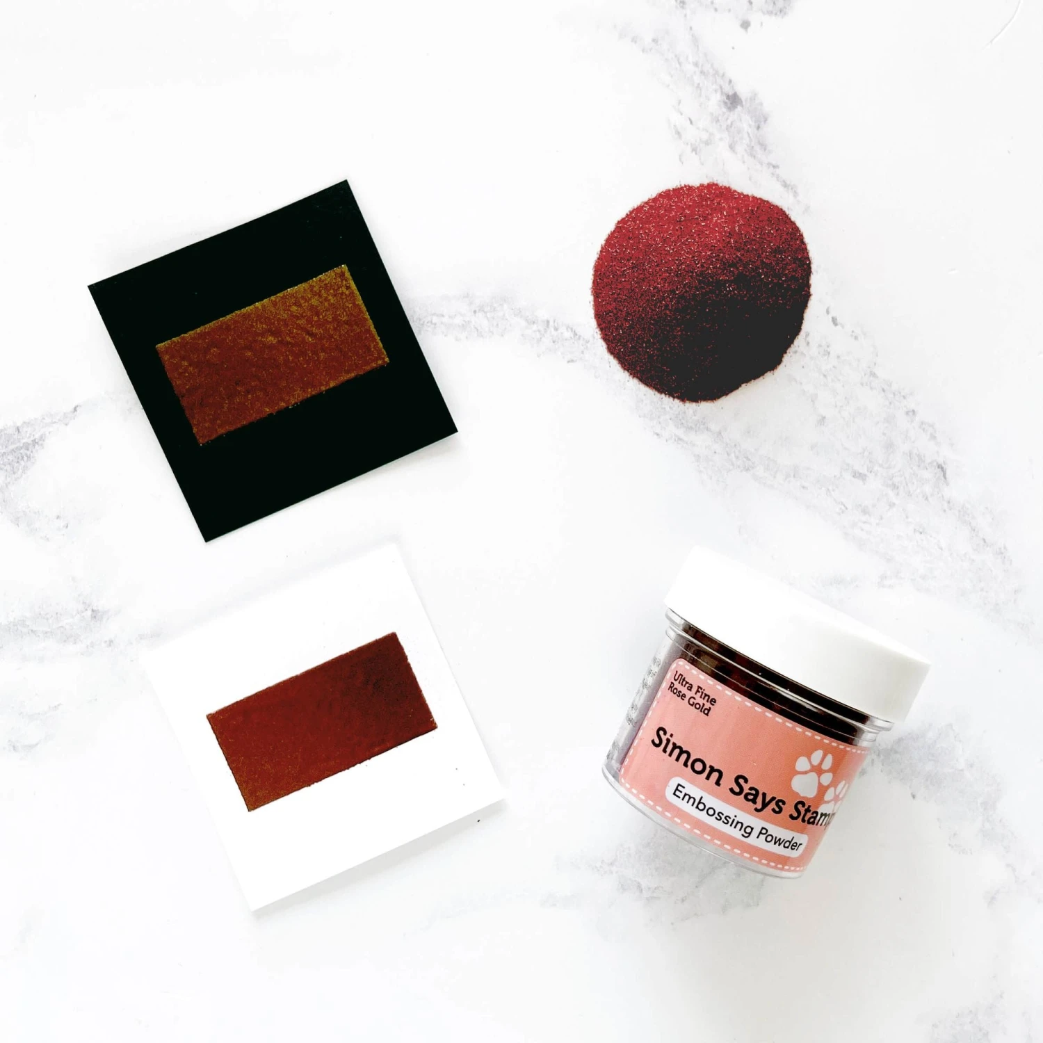 Simon Says Stamp Ultrafine embossing powder in Rose Gold adds a shiny, elegant finish to your stamped designs. This high-quality, finely milled powder captures even the most detailed images.