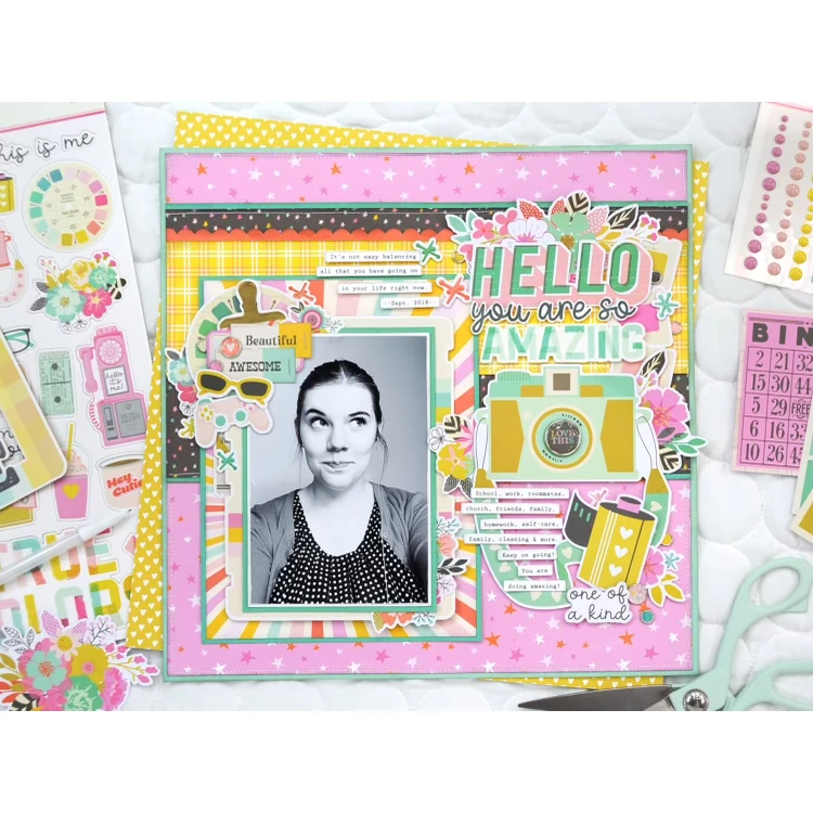 Experience versatility and quality with this premium 6 x 8 inch designer cardstock paper pad, ideal for scrapbooking, paper crafting, card making, planning, home decor, and more. Featuring 24 double-sided 65 lb. sheets, including 4 designer prints and (2) 3 x 4 greeting card element sheets (2 of each design), this pad is perfect for all your creative needs. Made in the USA, the imagery includes flowers, cameras, stars, hearts, and other crafting supplies in various shades of pink, yellow, coral, green, aqua, and turquoise.