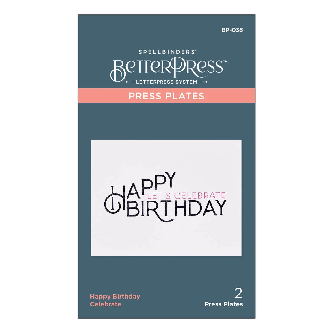 The Happy Birthday Celebrate Press Plate is a clever set of two press plates from the BetterPress Collection by Spellbinders. The placement of the sentiment is unique, making it a wonderful birthday greeting that can be used together or separately. Ink the plate with the BetterPress Ink to create a crisp letterpress design against the BetterPress Cotton Card Panel and Sheets.