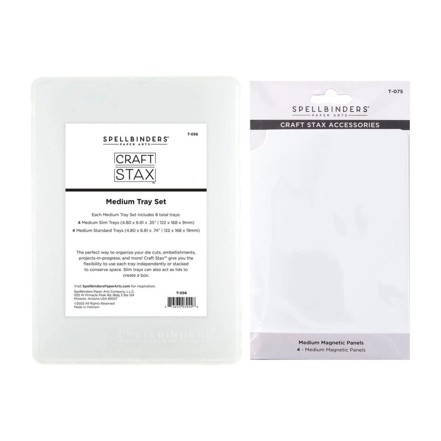 Spellbinders Craft Stax Medium Tray and Panel Bundle combines the Craft Stax Medium Tray Set T-056 and Magnetic Panels Medium t-075.