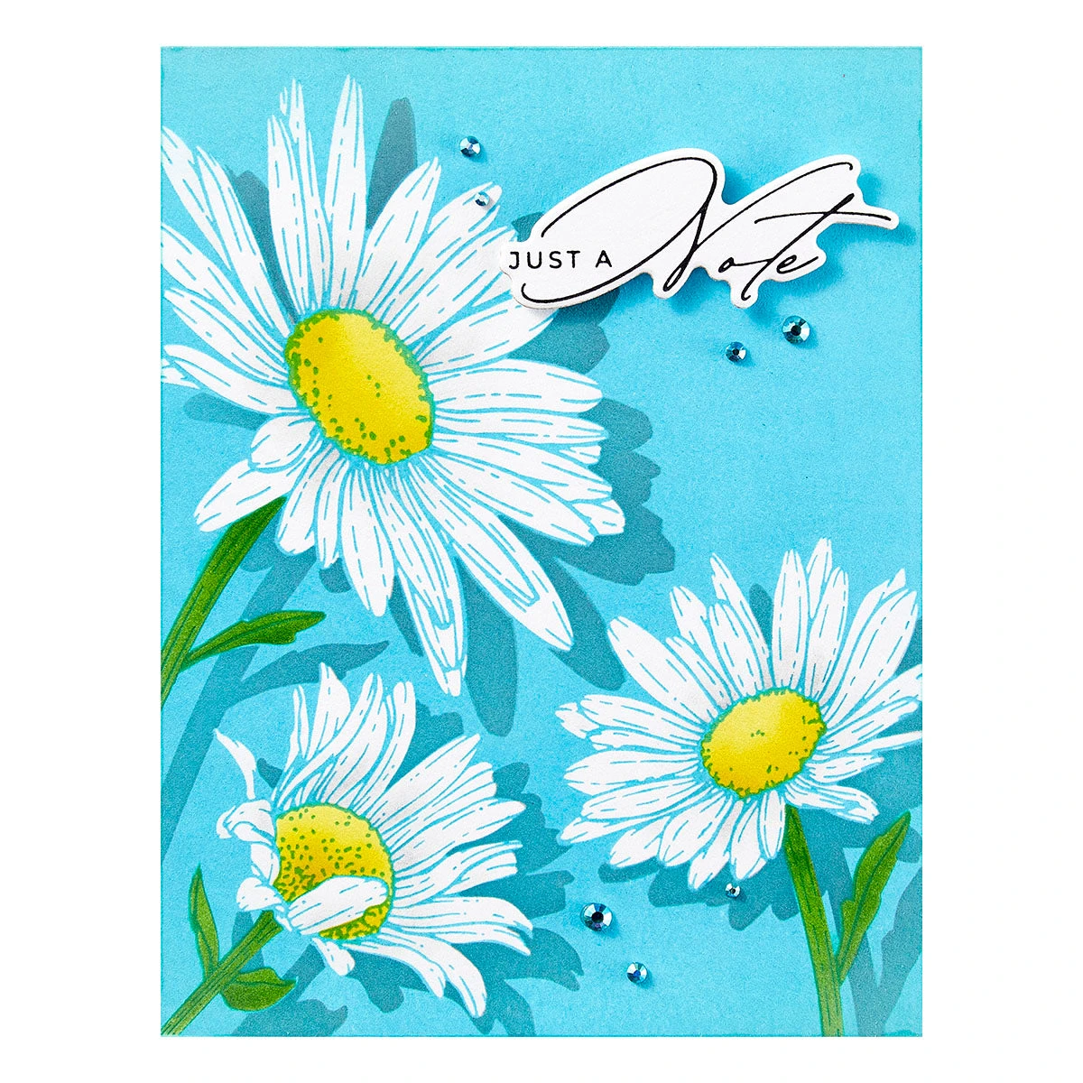 The Daisy Trio Press Plates are part of Yana’s Daisies Collection by Yana Smakula. These plates beautifully press three full-bloom daisies onto an A2-size (4.25 x 5.5 inch) card front. To enhance the depth of the design, consider using the STNB-005 Layered Daisy Trio Stencil (included in the BD-0946 Daisy Trio BetterPress and Stencil Bundle), which allows for the addition of color using inks, paints, and paste mediums. Ink the plates with BetterPress Ink to be pressed against the BetterPress Cotton Card Panel and Sheets for a crisp letterpress design. Only four easy steps for professional results! Place the BetterPress Press Plate onto the Chase (magnetic platform to hold the press plate). Next, tape the Card Panel on the Platen (clear top plate with registration marks). Apply Ink onto the Press Plate. Make a Letterpress Sandwich and run it through a manual die-cutting machine. It’s an easy-to-use system that produces a professional stationery style with detailed impressions that can be felt to the touch. Approximate Size: 4.40 x 5.65 inches / 11.10 x 14.30 cm.
