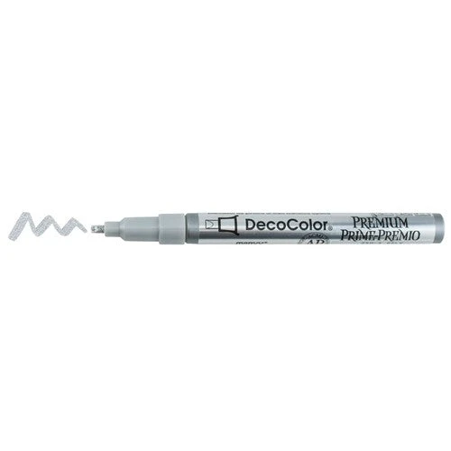 DecoColor by Marvy Uchida Premium Silver Metallic Marker is an opaque oil based paint producing rich metallic finishes, use to highlight designs on wax seals and add definition to crafts.