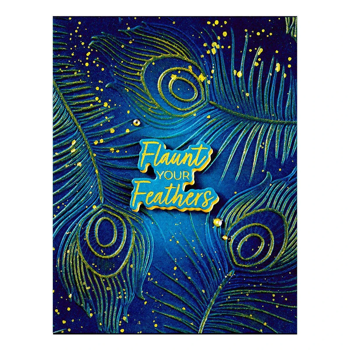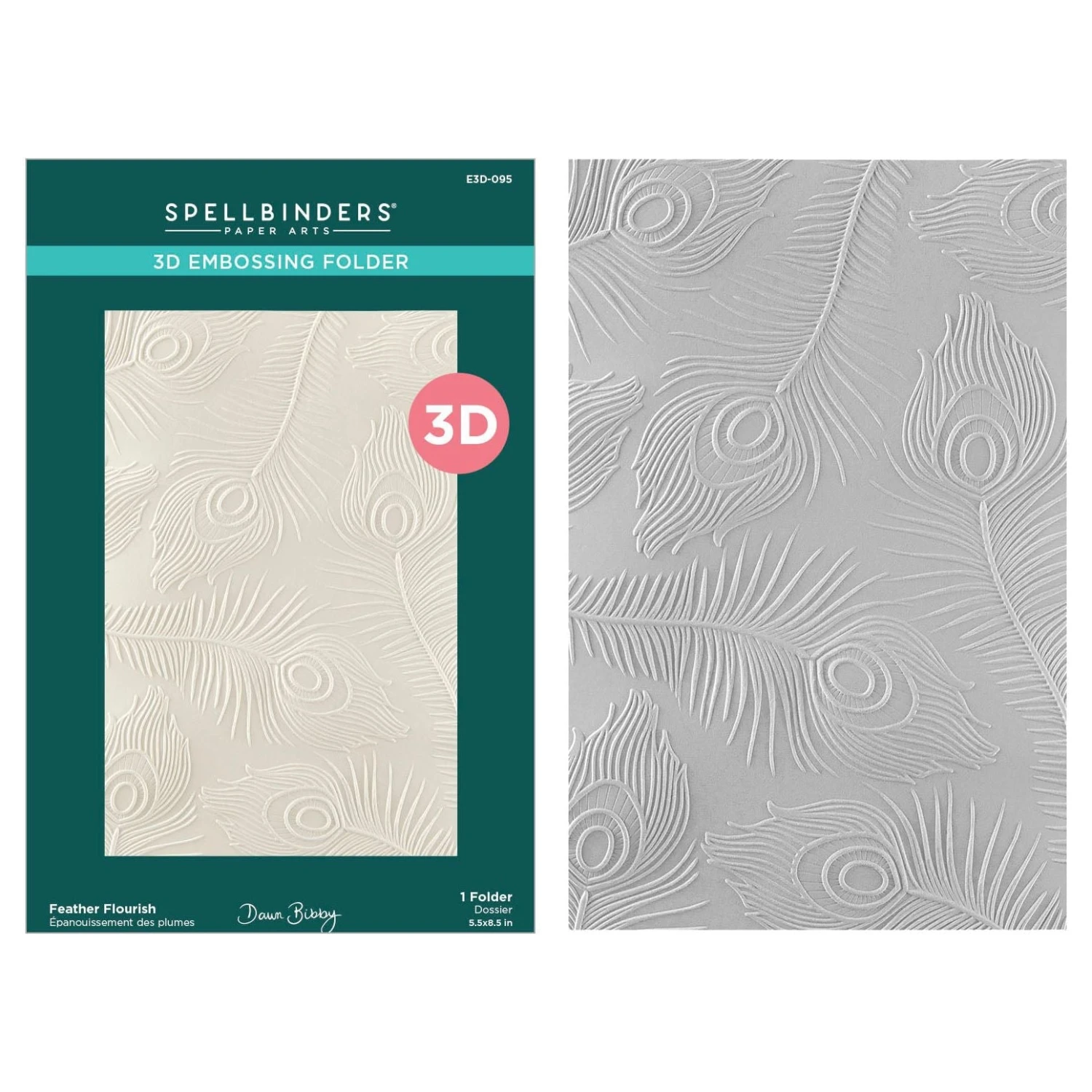 The Spellbinders Feather Flourish 3D Embossing Folder is from the Peacock Paradise Collection by Dawn Bibby. This 5.5 x 8.5-inch folder features a fabulous background filled with detailed peacock feathers, making it a wonderful addition to mix and match with other sets in this collection. This versatile 3D embossing folder can texturize various card sizes, from A2 (4.25 x 5.5 inches) to Slimline (3.5 x 8.5 inches). For the most detailed impression, lightly mist the cardstock with water before embossing.