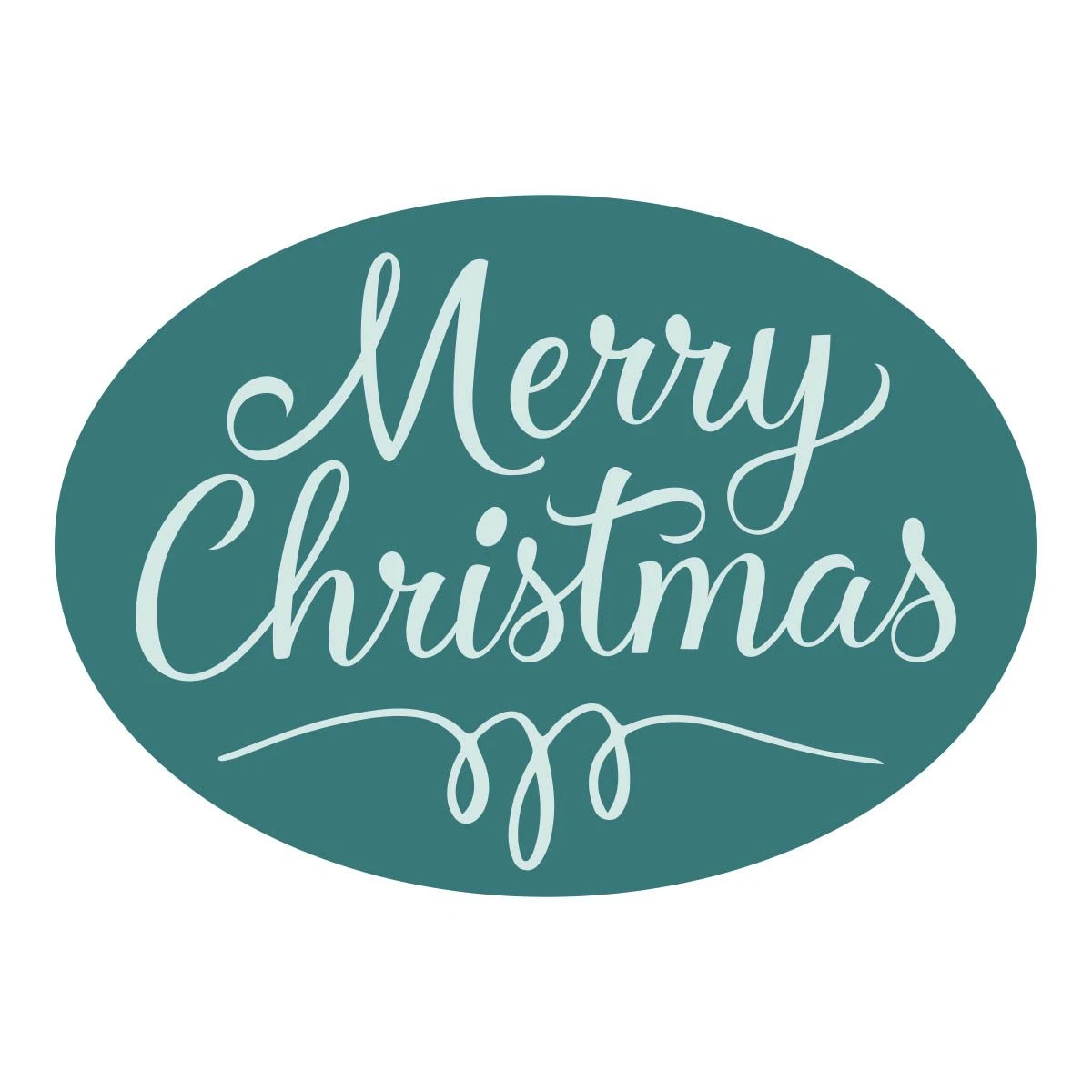 The Merry Christmas Oval Wax Seal Stamp, part of the Spellbinders Sealed for Christmas Collection, features a single wooden handle supporting a brass stamp design measuring 0.8125 x 1.125 inches at its end. The sentiment Merry Christmas is elegantly scripted with a charming loopy accent.