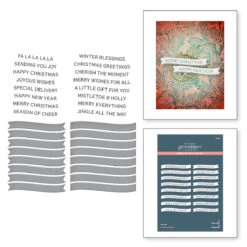 The Spellbinders Mistletoe Greetings Press Plate & Die Set is part of the Home for the Holidays Collection. This convenient set includes two press plates, each imprinting eight fun holiday sentiments, for a total of 16 greetings. You can die-cut these sentiments using either of the two thin metal cutting dies provided: a slightly curved ribbon-tail banner or a slightly curved sentiment strip, which adds a touch of movement to your greeting.