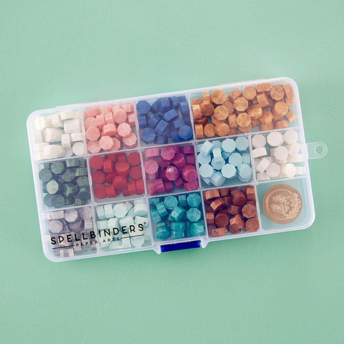 The box is designed for convenience and versatility. It is also stackable, making it easy to store multiple boxes and keep your craft supplies organized. Each compartment has a capacity of approximately 22 Spellbinders wax beads, ensuring you have ample space to store your collection.