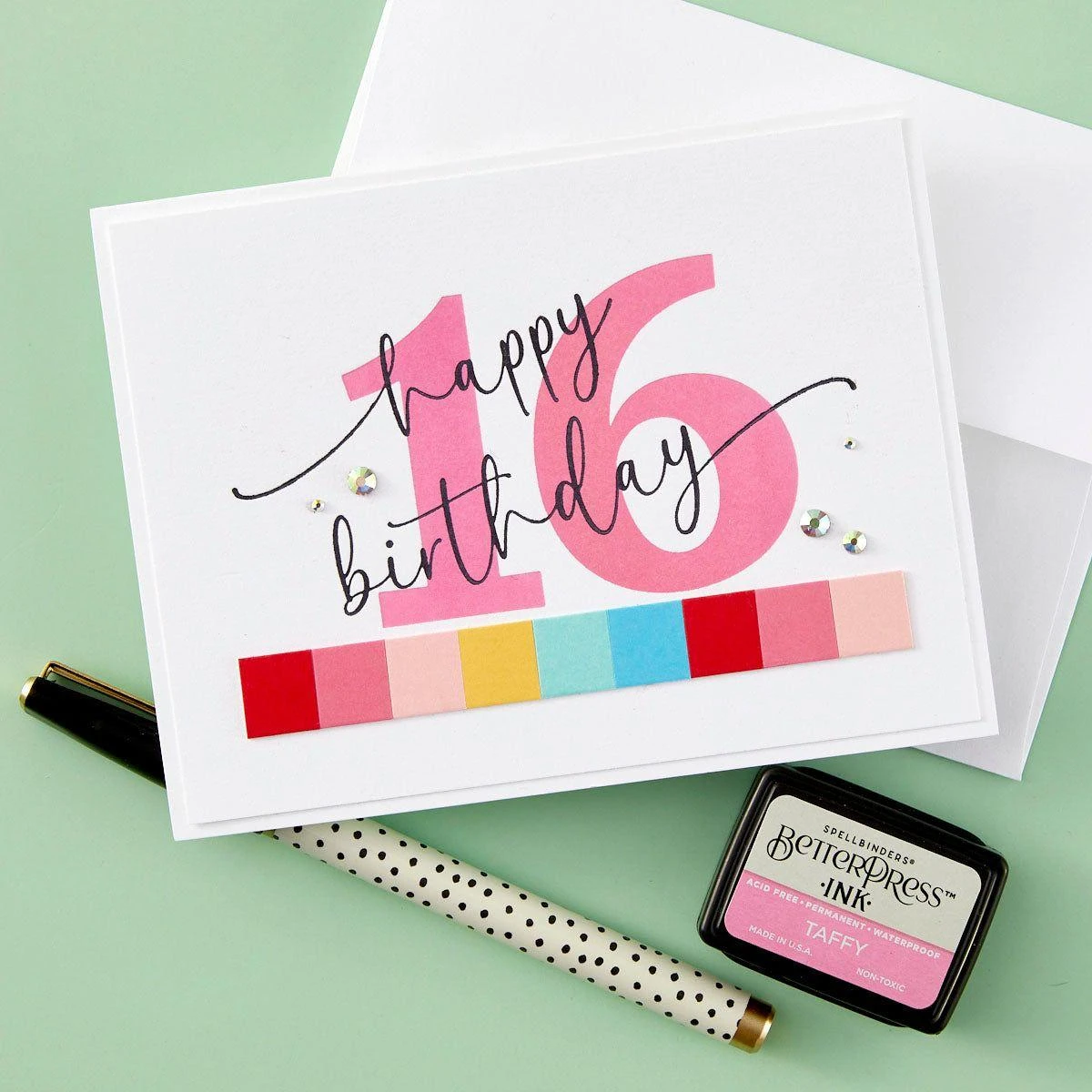 The Sweeping Celebration Sentiments Press Plates from the Spellbinders Color Mix Celebrations Collection add flowing, scripted sentiments to elevate your card creations. This set includes five press plates with greetings for birthdays, anniversaries, graduations, and a unique “Class of” sentiment for milestone cards. Perfect for creating customized cards, these sentiments bring elegance to any project. Use these plates alone or pair them with the BP-243 Bold Color Mix Numbers Press Plates to add vibrant, bold numbers to match the sentiments. Together, these two BetterPress Plate sets are a go-to for memorable and personalized creations! Printable templates are available to ensure precise placement on your projects—simply print, trim, and align for flawless designs every time. Perfect alignment in a snap. Download the birthday templates here, the anniversary templates here, and the graduation templates here. Ink the plates with BetterPress Ink to be pressed against the BetterPress Cotton Card Panel and Sheets for a crisp letterpress design. Only four easy steps for professional results! Place the BetterPress Press Plate onto the Chase (magnetic platform to hold the press plate). Next, tape the Card Panel on the Platen (clear top plate with registration marks). Apply Ink onto the Press Plate. Make a Letterpress Sandwich and run it through a manual die-cutting machine. It’s an easy-to-use system that produces a professional stationery style with detailed impressions that can be felt to the touch.