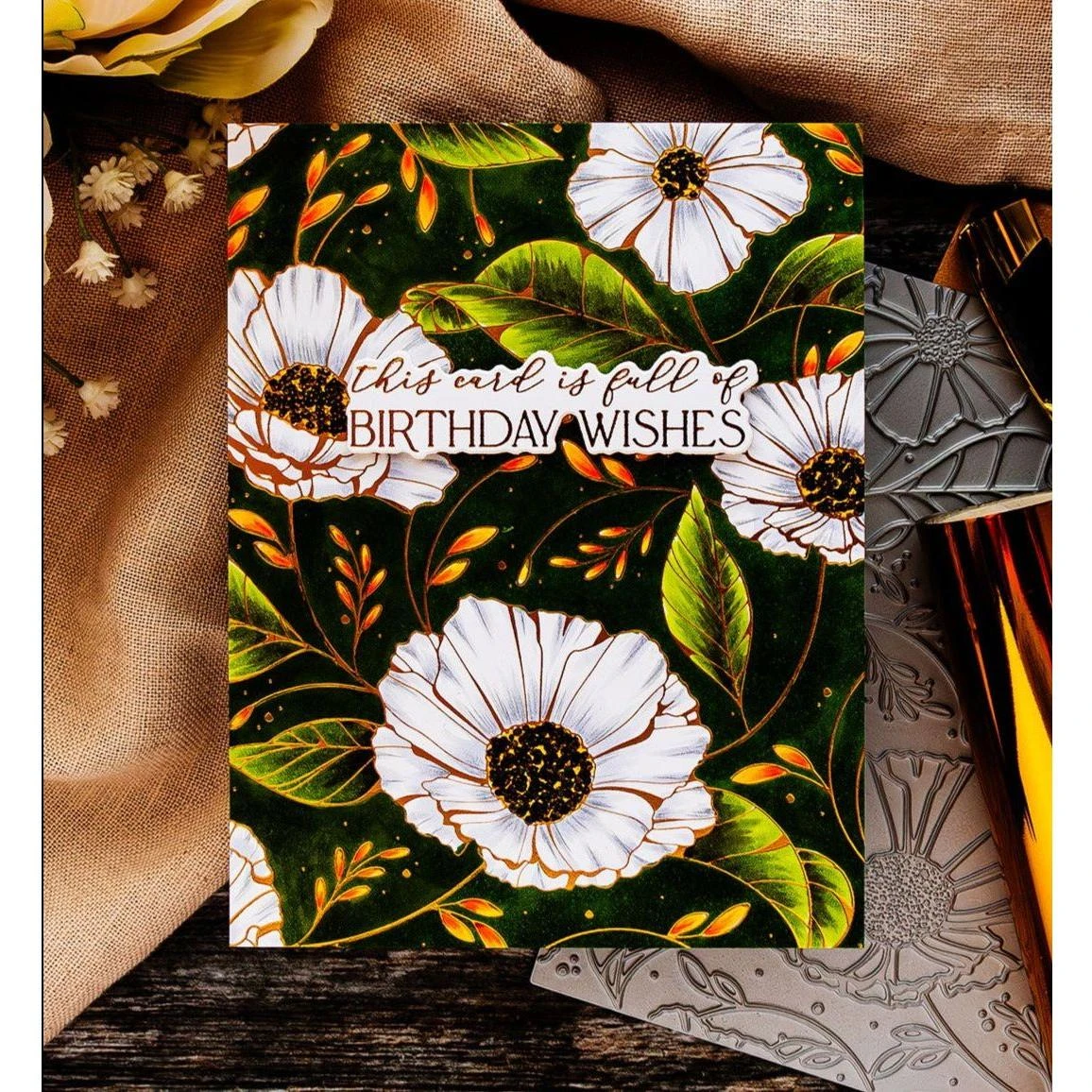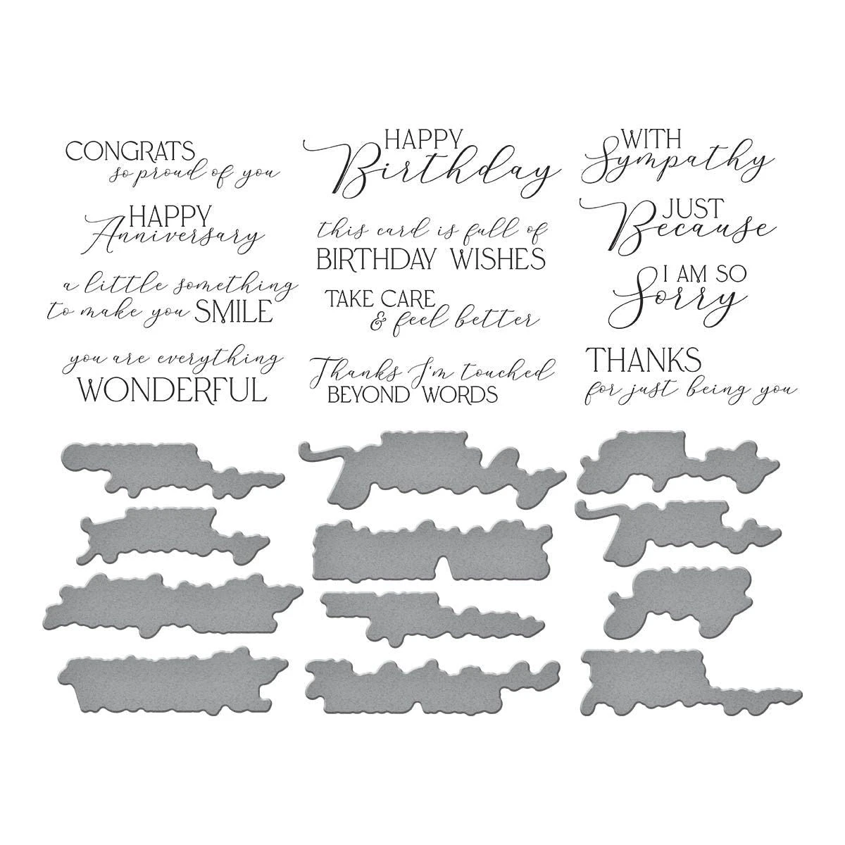 The Spellbinders You are Everything Sentiments Press Plate & Die Set is part of the Pressed Posies Collection. This versatile set includes one press plate filled with 12 all-occasion sentiments, covering everything from ‘Happy Anniversary’ and ‘With Sympathy’ to ‘Just Because,’ ‘Thanks,’ ‘Birthday Wishes,’ and more!