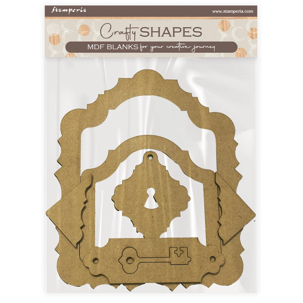Alice in Christmas is where two magical worlds meet: the dreamy Alice in Wonderland and the festive charm of The Nutcracker. This MDF blank set includes 7 shapes—ornate frames, corner pieces, a keyhole, a key, and the outline of the key. The key measures approximately 0.75 inches in length. Ideal for decorating with paper, fabric, rice paper, paint, or other mediums, these sturdy MDF pieces provide a versatile base for mixed media, home décor, and altered art projects. Add a touch of vintage elegance and fairytale wonder to your creations.