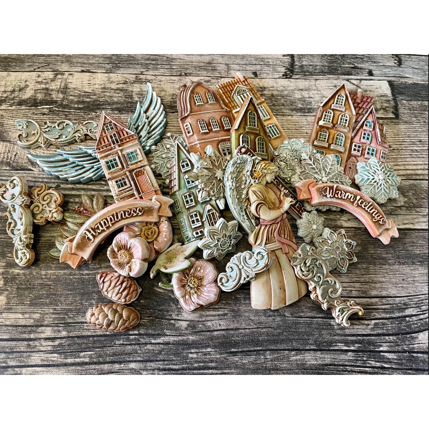 The Stamperia Cozy Christmas Houses A4 Soft Mold is a versatile tool for creating delightful holiday-inspired elements for your paper and mixed media projects. This MaxiMold allows you to pour soft clay, resin, or other moldable materials into the mold and wait for them to dry, resulting in easily removable shapes. The mold features 9 designs on an 8.25 x 11.75 inch surface, allowing you to create your own holiday village with 7 charming houses. Each house is complete with lots of windows and doors, adding intricate details to your creations. The mold also includes two banners with the sentiments “Happiness” and “Warm feelings,” which can be used to further embellish your projects.