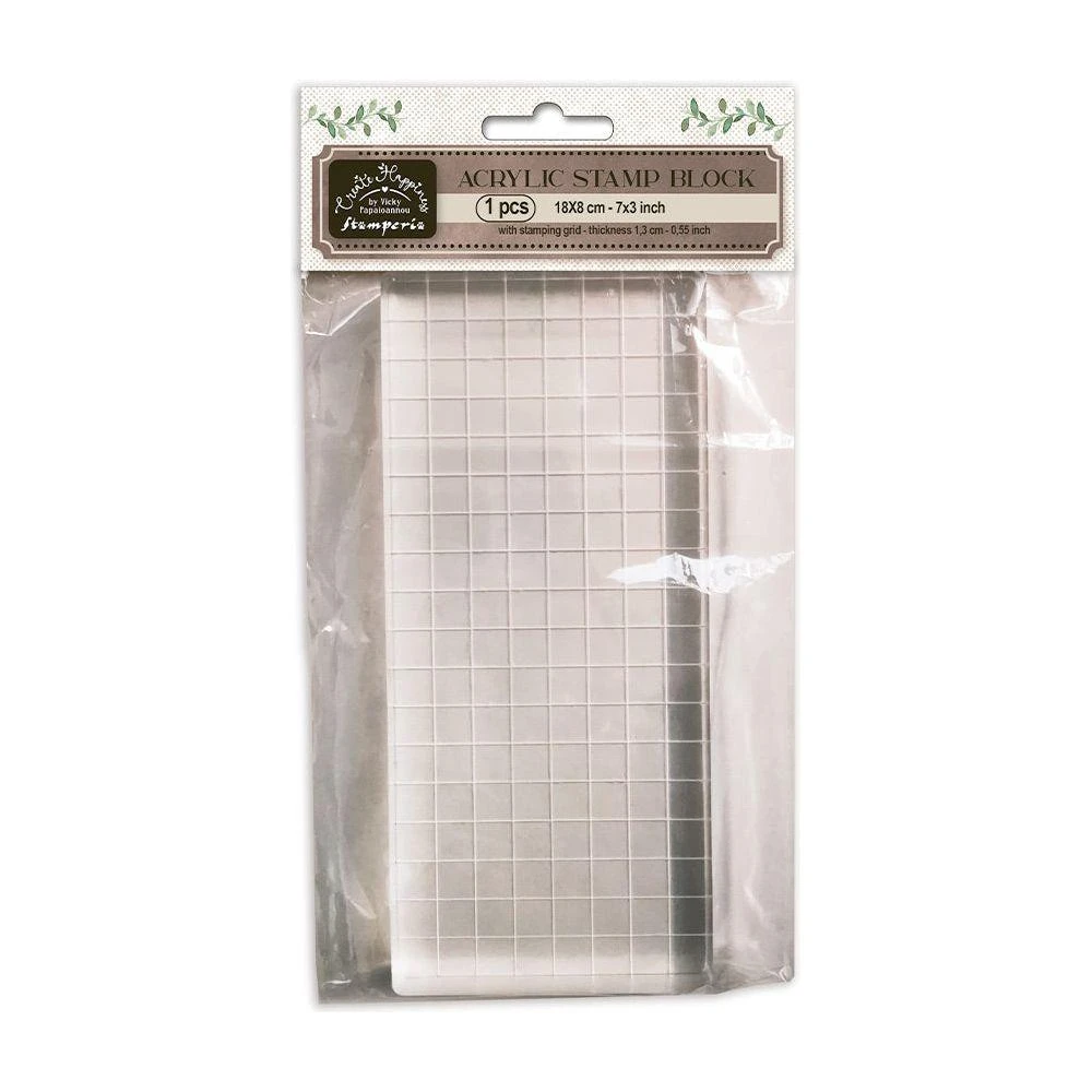 This stamp block is part of the Create Happiness Art Journaling Collection designed by Vicky Papaioannou. It includes 1 block with a stamping grid, approximately measuring 7 x 3 inches (18 x 8 cm). The thickness of the block is approximately 0.55 inches (1.3 cm).
