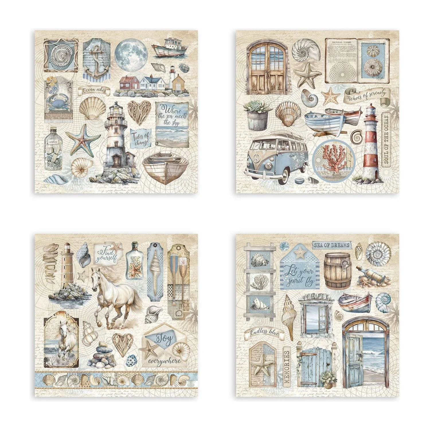 Silent Sea, designed by Cristina Radovan, captures the sea’s essence beyond the ordinary—its breeze, rhythmic waves, and the feeling of freedom it inspires. Includes four 6.5 x 6.5-inch sheets. Pre-cut and ready to use, these stickers are ideal for scrapbooking, journaling, and collage projects. The designs feature a VW Bus, a horse, seashells, starfish, ocean scenes, boats, lighthouses, a moon, anchors, driftwood, beach houses, and much more—perfect for adding a coastal touch to any creative endeavor.
