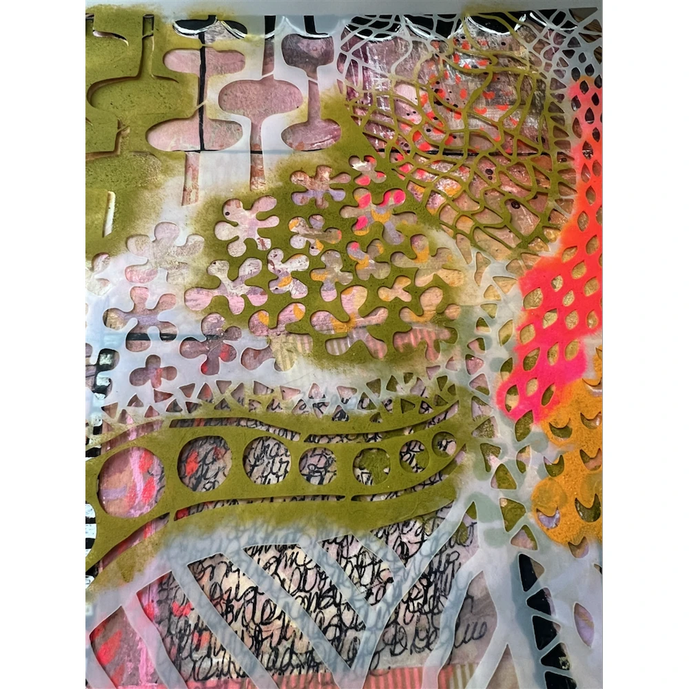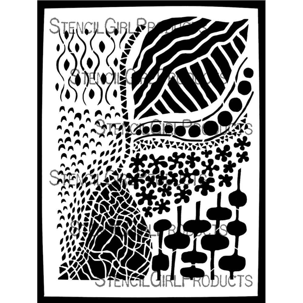 The StencilGirl Collage II Stencil, designed by Mary Beth Shaw, showcases an expressive mix of abstract shapes and textures, perfect for creating layered, artistic backgrounds. This 9 x 12 inch stencil is ideal for mixed media, journaling, and collage projects.