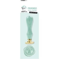 The Studio Light Happy Paw Mail Friendz Wax Stamp features a wooden handle with a round brass seal stamp design. It displays a small envelope and the sentiment “Happy Paw Mail!”—a charming addition for adding unique and elegant wax seal accents to your cards, envelopes, and more. This stamp is part of the Creative Craft Lab Friendz collection by Jolanda Bergmans.