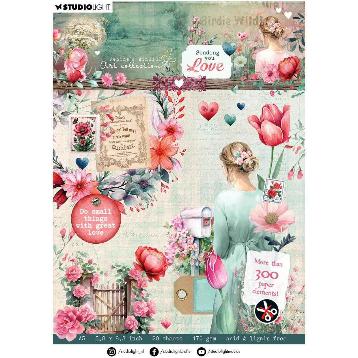 The Studio Light Sending You Love Die-Cut Paper Elements Pad, part of Jenine’s Mindful Art Collection, is a versatile addition to your creative projects. This handy book includes 20 sheets with over 300 pre-cut paper elements, printed on heavyweight 170gsm, acid-free cardstock. Designed to complement the rest of Jenine’s Sending You Love collection, these elements can also be used on their own for scrapbooking, mixed media, journaling, and card making. Measuring approximately 5.8 x 8.3 inches, this pad features ephemera including flowers, girls, wreaths, foliage, postage, café scenes, hats, bouquets, tags, wildflowers, and more—perfect for adding charming details to your projects.