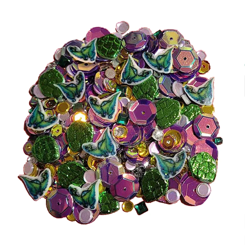 The Sweet November Stamps Dragon’s Treasure Embellishment Mix is bursting with magical sparkle! This dazzling blend features holographic and metallic sequins, diamonds, emeralds, dragon scales, and tiny SNS dragons—perfect for shaker cards or fantasy-themed projects. Each packet contains approximately 1 tablespoon and is uniquely handmade, so no two are exactly alike. Store away from direct sunlight to prevent fading or brittleness.