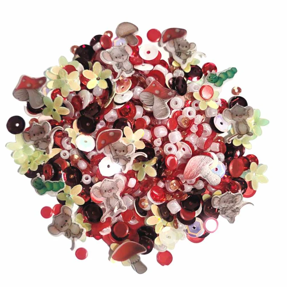 Explore Sweet November Stamps Fall Mushroom Sequin Mixes! This exclusive blend boasts coordinated sequin colors in rich reds, crisp whites, and lush greens. It’s adorned with delightful SNS character elements, including mushrooms, mice, and caterpillars, sized between 8 mm and 22 mm—perfect for shaker cards of any size. Each packet contains approximately 1 tablespoon, and with each package being uniquely crafted, add a touch of fall enchantment to your creations!