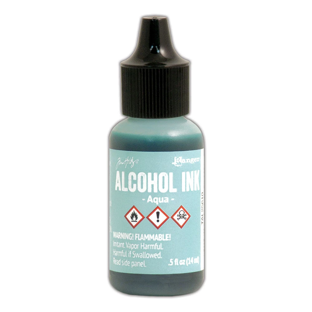 Effortlessly express your creativity with the luxurious Tim Holtz® Alcohol Ink Aqua. These premium, quick-drying inks are specially crafted to produce stunning color blends on impermeable surfaces. Perfect for applying on Alcohol Ink Dura Lar, Yupo®, Cardstock, Foil, Glossy Paper, and more. Unleash your artistic potential by experimenting with metal, glass, and glazed tiles. Each bottle contains 0.5 fl oz (14ml) of high-quality ink.