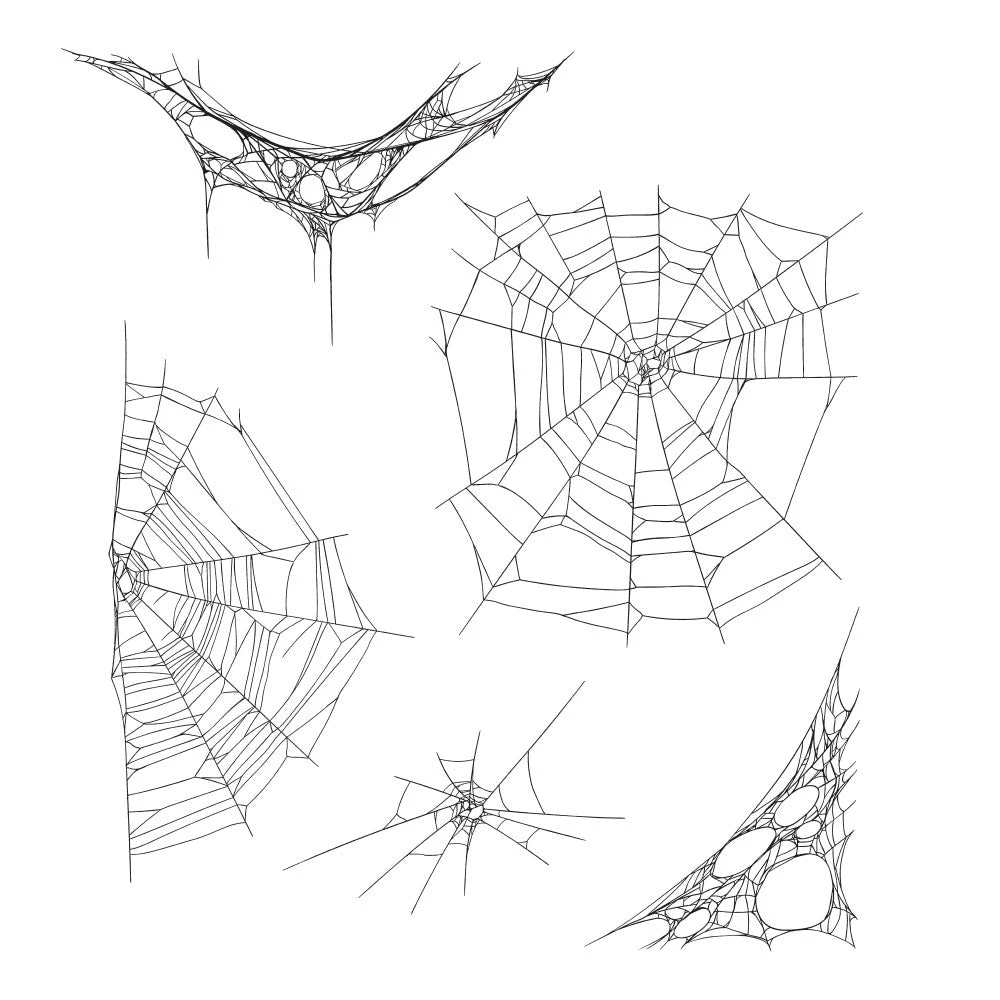 Large spiderweb (upper right) measures approximately 3.438 x 3.625 inches, corner web (lower right) measures approximately 2.188 x 2.75 inches.