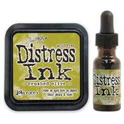 Tim Holtz Distress Inks are a collection of dye inks that are acid-free, non-toxic, and fade and water-resistant. They help crafters create a weathered, aged look on paper, photos, and decorative fibers, lending versatility when color layering and photo tinting. The 3×3 inch pads feature a raised felt for easy direct-to-paper application and larger stamping. The 0.5 US fl. oz. bottle includes a convenient medicine dropper top.