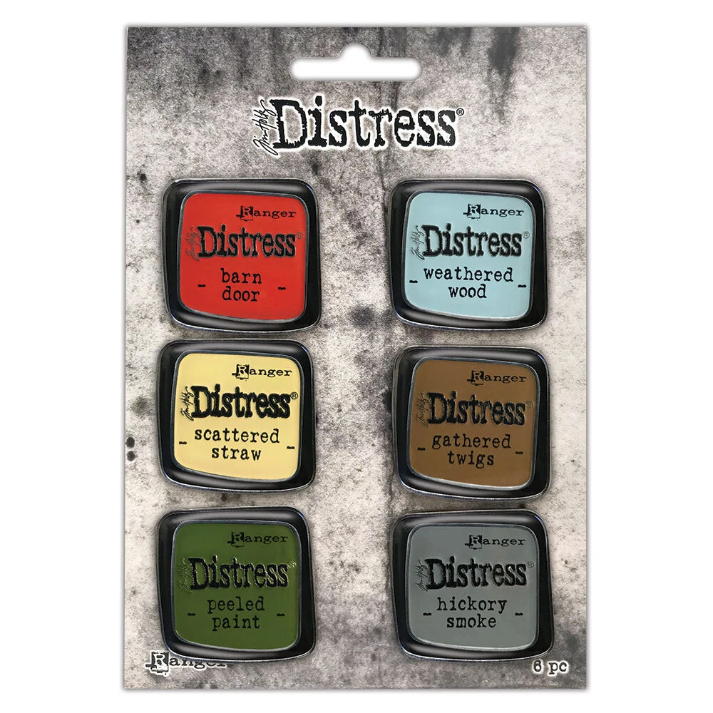 The iconic Tim Holtz Distress Ink Pads are now available in collectable mini Enamel Pins! Distress Enamels Pins are inspired by the styling of the original ink pads, with a graphic flair. These custom pins are created in your favorite colors of Distress, engraved in silver metallic and layered with a smooth, shiny finish.