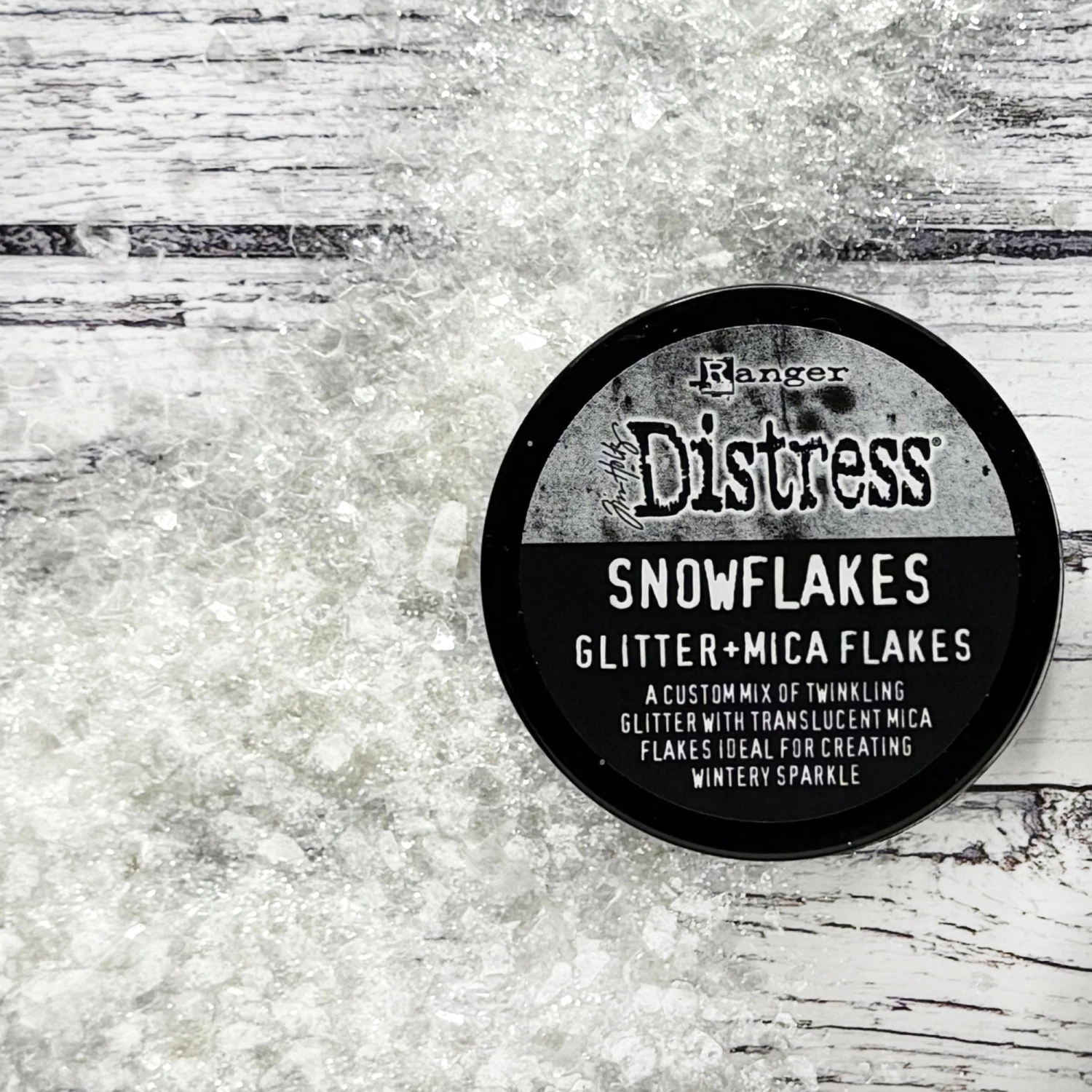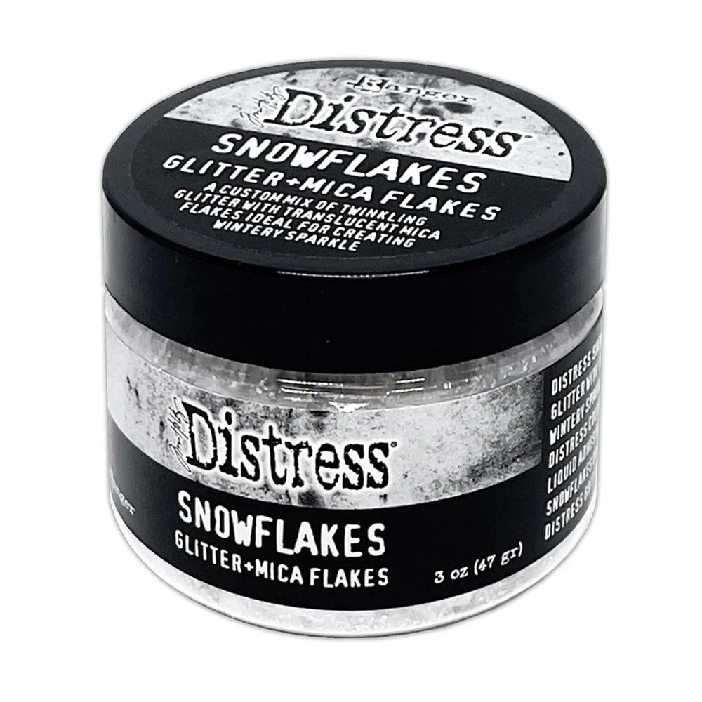 Tim Holtz Distress® Snowflakes blend shimmering glitter with translucent mica flakes to bring a magical winter sparkle to your crafts. Stick them down using Distress Collage Medium, Ranger Glossy Accents, or any liquid adhesive you like. For extra pop, sprinkle snowflakes onto wet Distress Texture Paste or Grit Paste and let them dry. Comes in a 3 oz (47gr) jar—perfect for adding frosty fun!