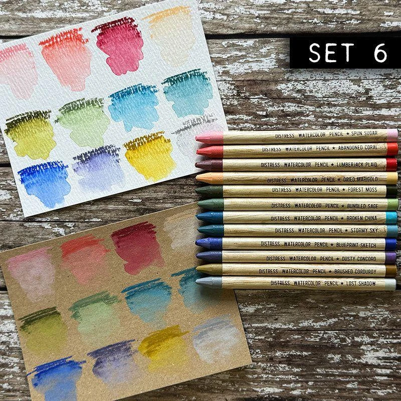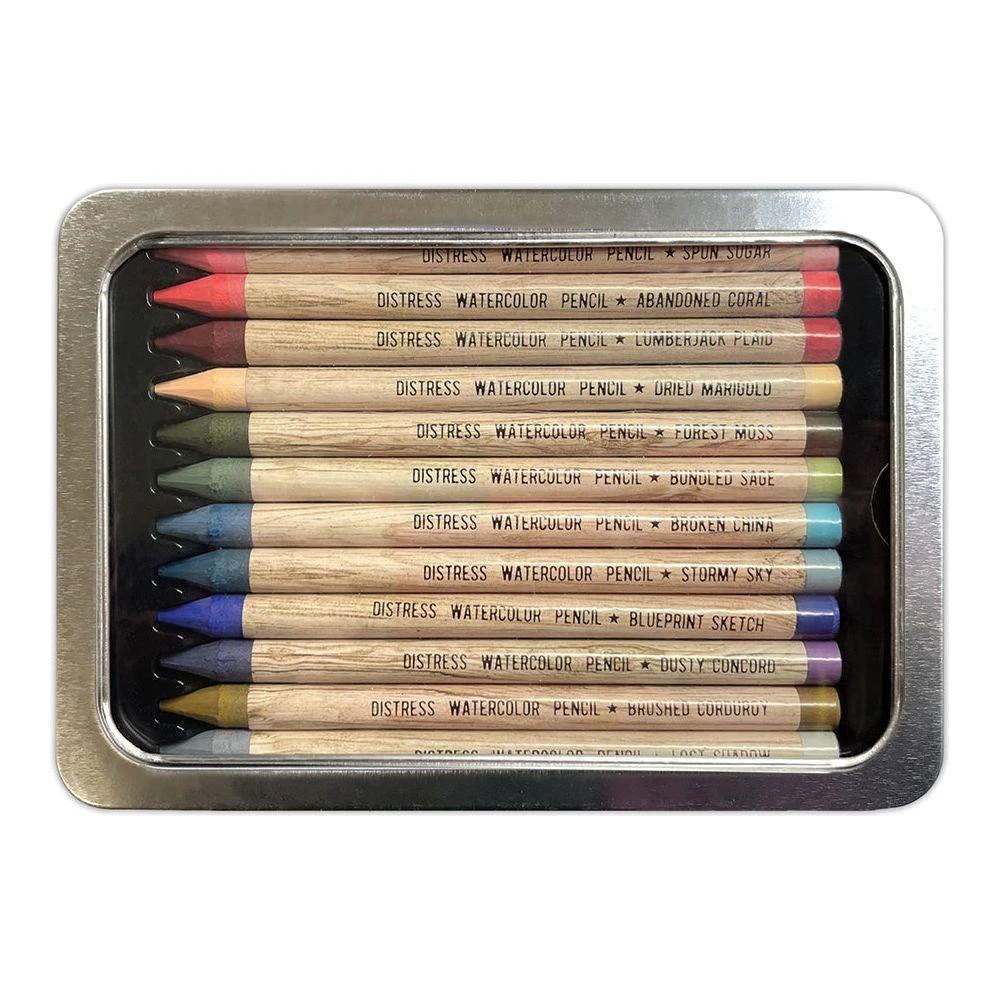 Crafted with the expertise of Tim Holtz, this set of Distress Watercolor Pencils (Set 6) is a versatile tool for achieving vibrant coloring effects on porous surfaces. The pencils feature solid water-reactive pigments, making them ideal for tasks such as watercoloring, shading, and sketching. Simply apply the color directly onto the surface and blend with water for stunning results. For even more possibilities, pair with other Distress products such as Ink, Oxide, Sprays, or Paint. Approximate tin dimensions: 4.5 x 6.4 inches.