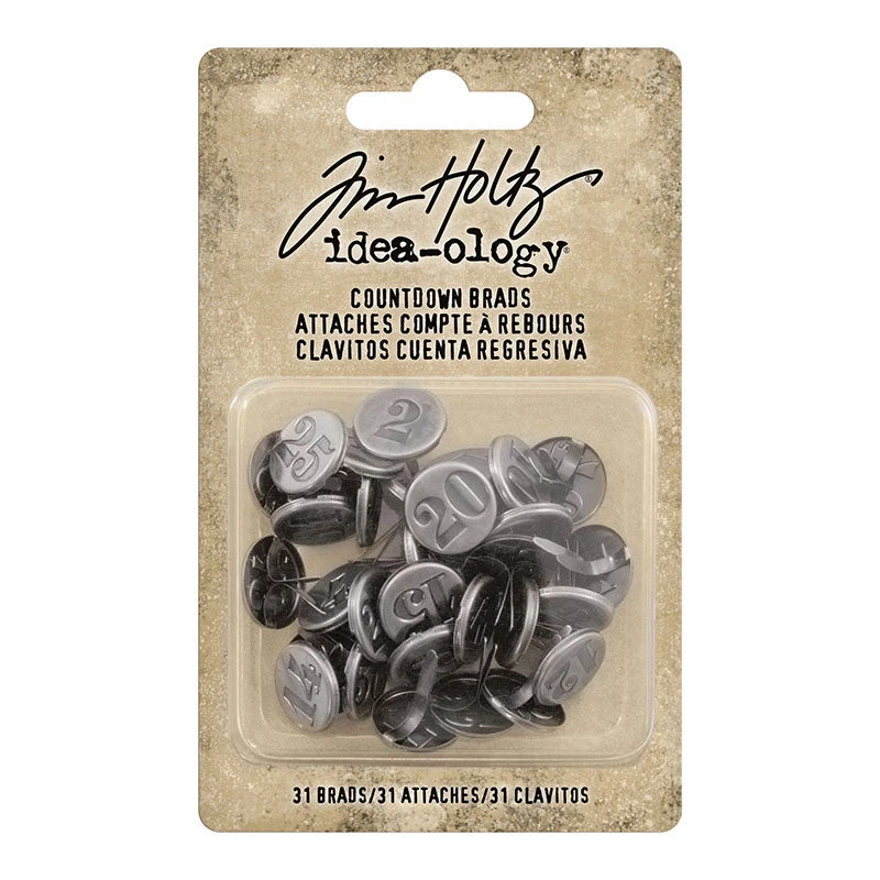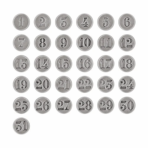 Metal Fasteners displaying numbers 1-31. Includes 31 brad with an antique nickel finish.