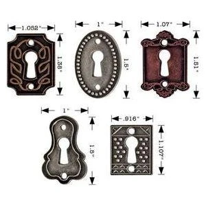 Tim Holtz has designed these fabulous embellishments! Tim continues to be inspired by the nostalgia of the past. These metal keyholes can be used on your pages, cards, mini books, home decor, and even jewelry to add that touch of intrigue. Each design has dimensional detailing with a classic vintage style. Use along with Idea-ology Word Keys (available through the store!) to unlock your inner creativity.