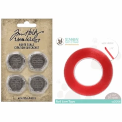 Add a touch of inspiration to your crafts with the Tim Holtz idea-ology Quote Seals and Red Tape bundle. The Quote Seals are metal tokens resembling stamped wax seals, each featuring a unique quote. Measuring approximately 1 inch in diameter, these metal adornments add a thoughtful detail to your projects. The bundle also includes a mega roll of Simon Says Stamp Red Line Tape, offering ultra-strong double-sided adhesive spanning 36 yards. Heat-safe and embossable, this 1/4 inch wide tape is perfect for various surfaces, including metal and paper. Made in the USA, it’s an essential addition to your crafting toolkit.