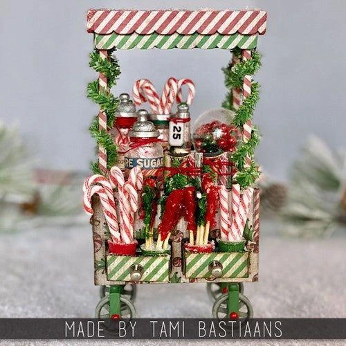 Tim Holtz Confections for Christmas pack includes cute resin candies in various shapes and sizes that will lend themselves well to any Christmas scene you create. Resembling candy canes, try to resist these resin candies! Confections can fill Tim Holtz Snowglobes or hang them from the Tim Holtz Woodland tree lot trees. Or use them as a dimensional element on Christmas paper crafts, or in Christmas party home décor.
