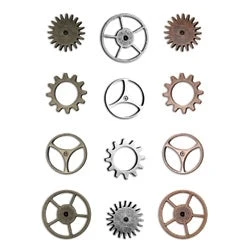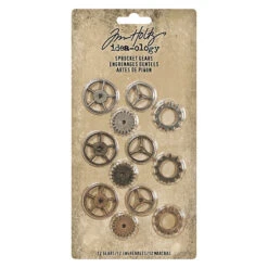 Tim Holtz has designed these fabulous embellishments! Time tells a story and each day unfolds a new chapter. Whatever your way of capturing everyday, these sprocket gears can add a little mechanical element to your projects. Fasten them with brads, wire, or other hardware to add an industrial feel to your work.