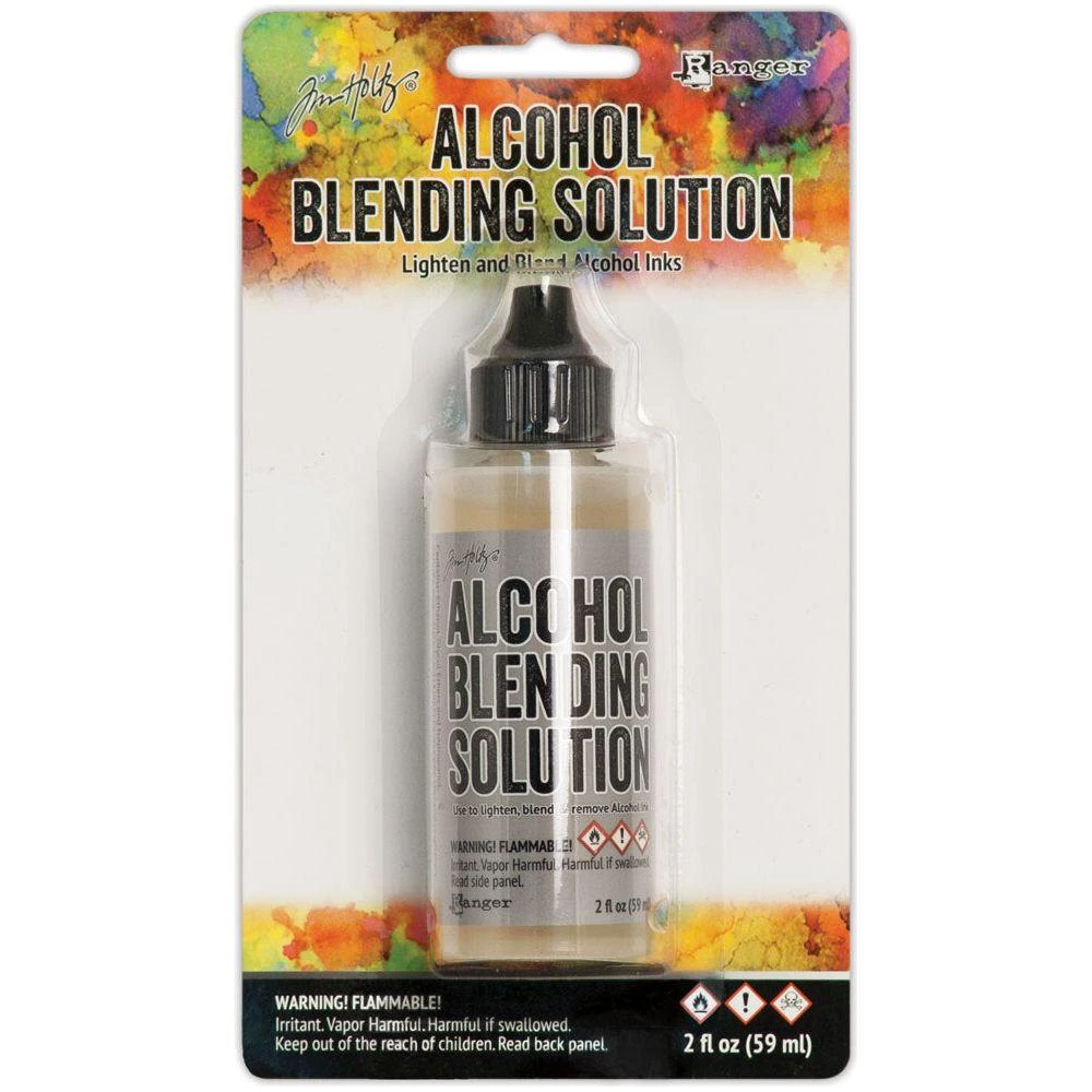 Tim Holtz Adirondack Alcohol Blending Solution is specifically formulated to lighten and blend Adirondack Alcohol Ink colors, as well as remove ink from slick surfaces, hands and art tools!