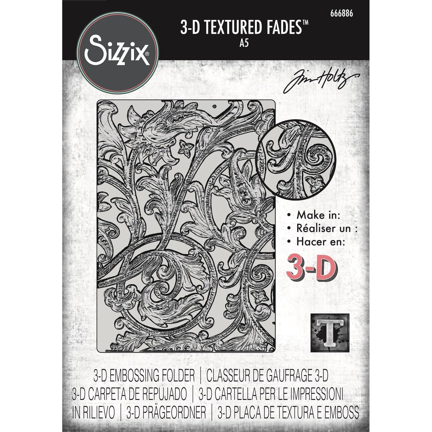 Tim Holtz is bringing his favorite designs back from the Vault, better than ever. These popular embossing folder designs have been transformed from A6 to a larger A5 size, providing even more opportunity for makers. The 3-D Texture Fades Entangled Large/A5 embossing folder, curated by Tim Holtz, features an intricate design of swirling vines that adds movement and texture to any project. The larger format captures the full depth and detail of the pattern, making it perfect for cards, scrapbooks, mixed-media art, and more. The folder measures approximately 6 x 8.5 inches. For best results, spritz paper lightly with water, use one cutting pad with an adapter, and run through your machine 2–3 times.