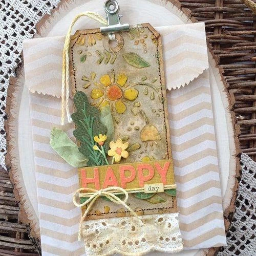 Thinlits create dazzling detailed shapes for more creative cardmaking and papercrafting projects. These wafer-thin chemical-etched die sets are designed to cut, emboss or stencil a single sheet of cardstock, paper, metallic foil or vellum. Use them for enhanced intricacy and to add a special touch of inspiration to all your projects. Compatible with the Big Shot, Vagabond and most cutting machines. This set includes a handy storage envelope. For easy identification, trim off the packaging front flap, keep and slip into the envelope. Curated by Tim Holtz. Die is approximately 4.25 x 5.5 inches.