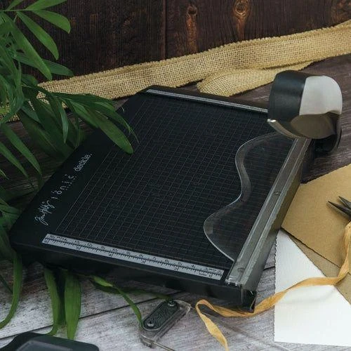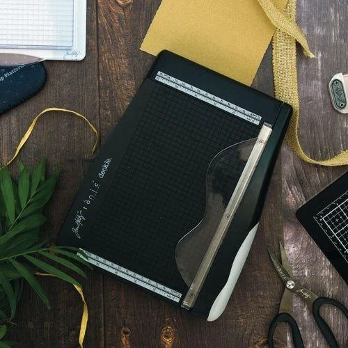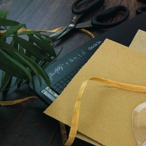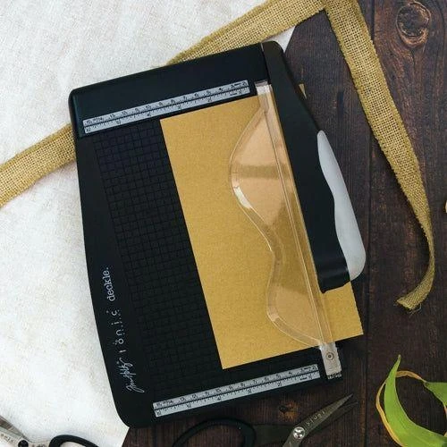 This 8.5 inch trimmer by Tim Holtz has a comfort grip and a sharp deckle torn edge blade for easy cutting! The ruler along the bottom edge measures up to 6 inches.
