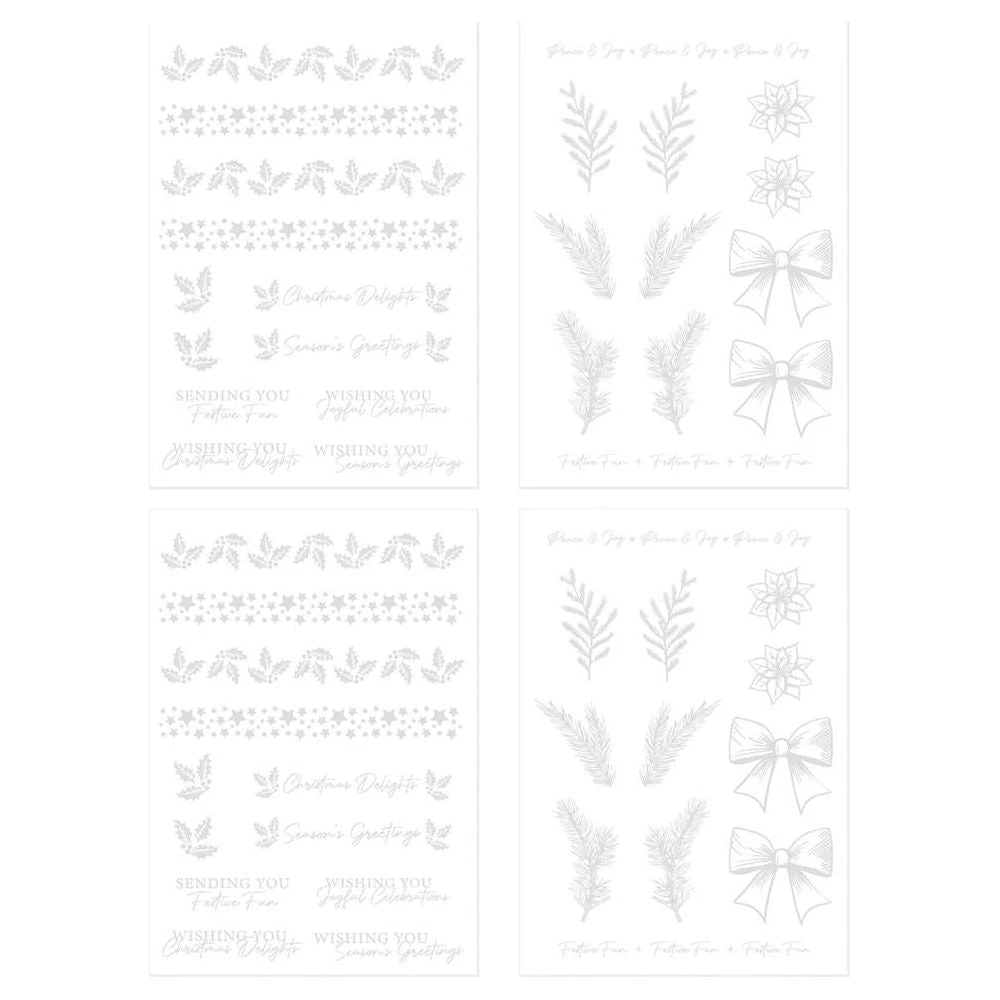The Tonic Timeless Tiding Foil Fusion Adhesive Sheet is part of the elegantly designed Timeless Tidings Collection. This collection caters to traditional crafters who appreciate nostalgic imagery, and can be enhanced with the coordinating Die Set (item 5530e). With four A5 sheets and a total of 48 elements, these adhesive sheets can be combined with Foil Fusion Foils to create exquisite, gilded designs. Some elements can even be die-cut using the Timeless Tidings Die Set for a seamless finish. Detailed instructions are included for effortless use.