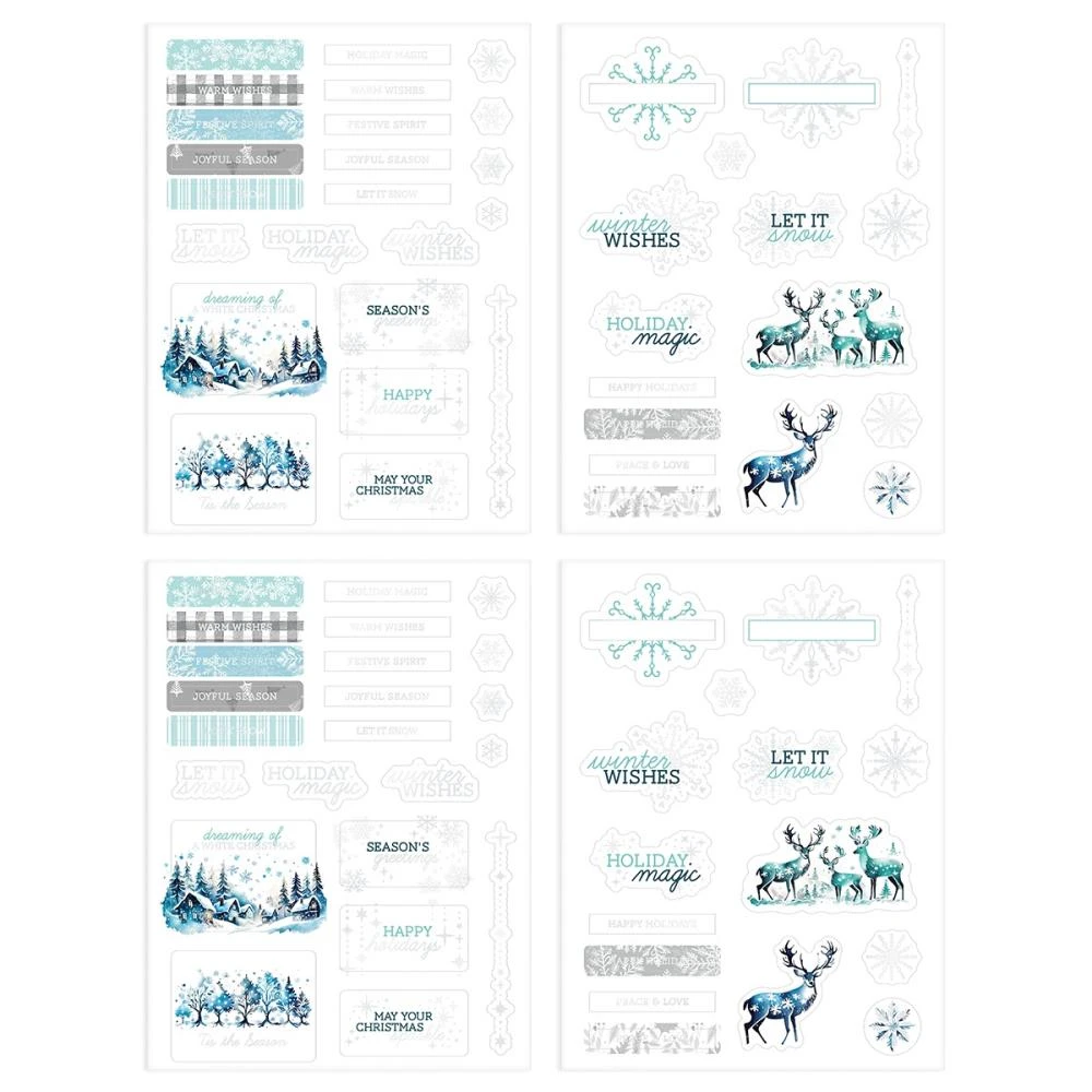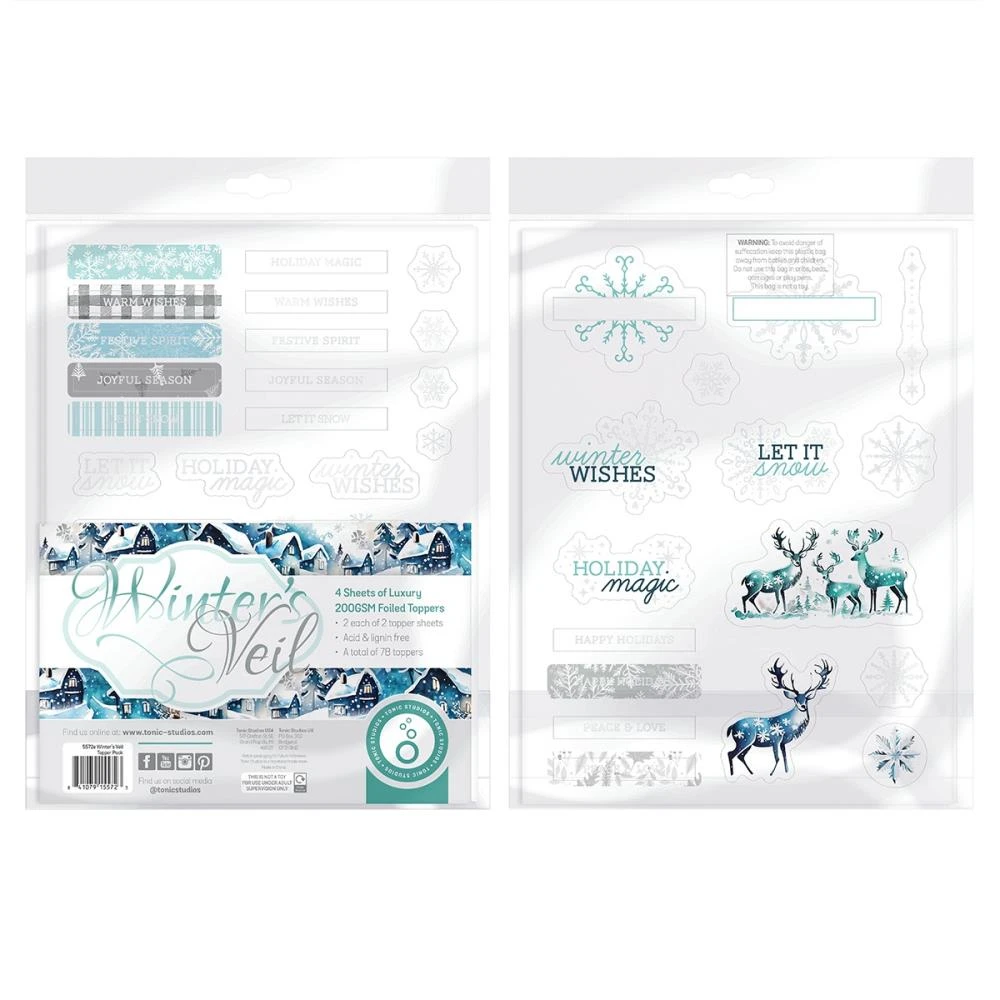 Indulge in the opulence of the Tonic Winter’s Veil Toppers Set. This exclusive set features 4 luxurious 200gsm foiled sheets, 2 each of 2 stunning designs. Free from acid and lignin, these toppers provide a sophisticated touch to your projects. With a total of 78 toppers, your creativity will have no bounds. Measuring approximately 8.8 x 11.1 inches, this pack showcases exquisite imagery of snowflakes, winter foliage, majestic deer, charming snowy villages surrounded by trees, elegant ornaments, and more in a sophisticated color palette of blue, silver, and grey. Elevate your crafting game with this exquisite set.