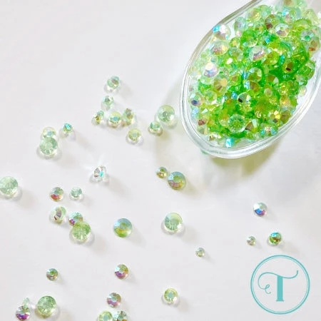 This embellishment selection contains a mix of flat-back rhinestones in an assortment of sizes. Comes in a plastic storage box. 0.2 oz of embellishment (approx. 1 – 1.5 tsp). Storage box measures approximately 2 x 1 x .5 inch.