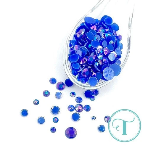 This selection contains 1.5 tsp of semi-opaque iridescent acrylic rhinestones. Mix contains 4 sizes (8mm, 6mm, 5mm, 3mm) Approx. 250 pcs.