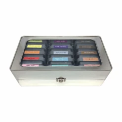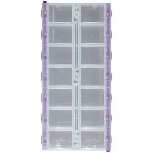 14 individual compartments with easy snap top lids packed in a convenient tray keeps your small embellishments in a neat, organized manner for easy access.