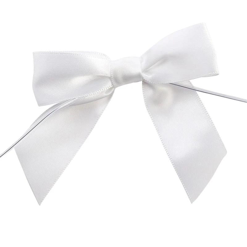 Enhance your next craft project with our White Twist Tie Satin Bows! These pre-tied bows add a sweet touch to gifts, cards, and more. Made of 100% polyester satin, they feature wire for easy attachment and are perfect for headbands, jewelry, and sewing projects. Elevate your creations with these elegant bows. Made of 100% polyester. Set of 12 approximately 3 x 2.5 inch bows.