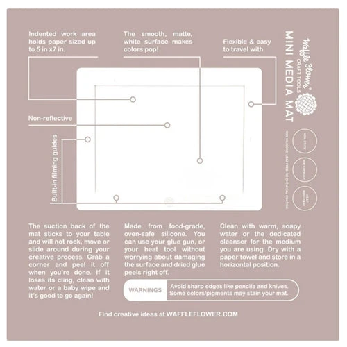 Our Mini Media Mat is packed with value added features. The smooth, non-stick surface makes it perfect for techniques such as ink blending, ink transfer and faux watercolor stamping. You can even make your own enamel dots on it!