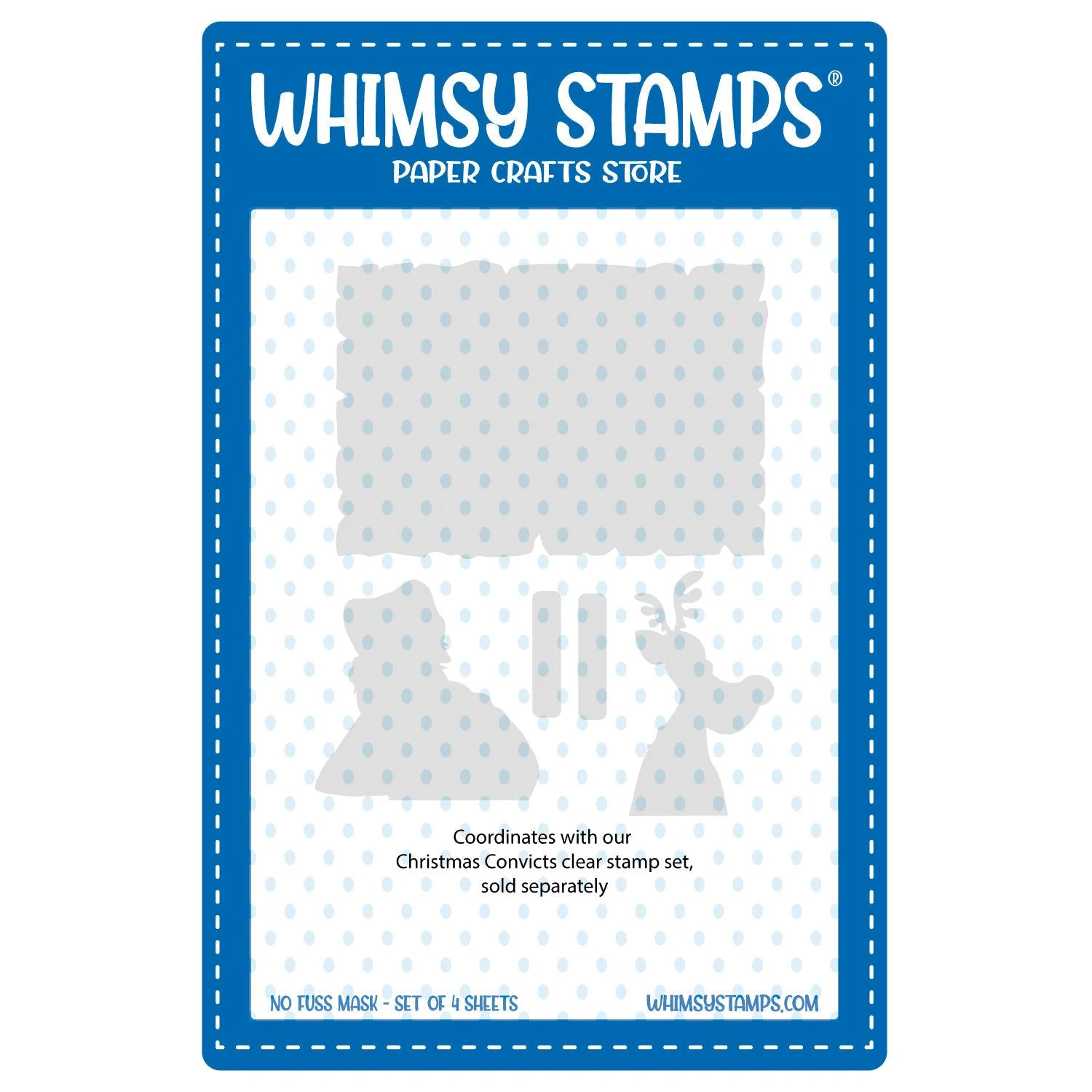 Introducing the Whimsy Stamps Christmas Convicts NoFuss Masks! Tired of the FUSSY CUTTING, yet eager to achieve those stunning masked effects? Ever wished for pre-cut masks tailored to your favorite Whimsy stamp sets? Your wish is granted with the all-new Whimsy Stamps NoFUSS Masks!