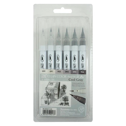 Zig Clean Color Real Brush COOL GRAY 6 Color Set Rb6000at6vb*